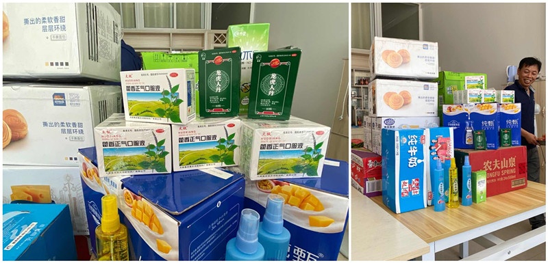 2020年夏日慰问第一站是泗洪光伏发电领跑奖励激励基地1号牧光互补项目。慰问团队于中午12点到达目的地,首先来到项目部为大家送上了牛奶、面包、矿泉水、方便面等生活物资,更贴心地准备了藿香正气液、龙虎人丹、防蚊液等防暑降温物品。大家纷纷表示:十分感谢公司对员工的亲切关怀,一定会在高温下保护好自己,克服各种困难,保质保量完成各项任务目标。