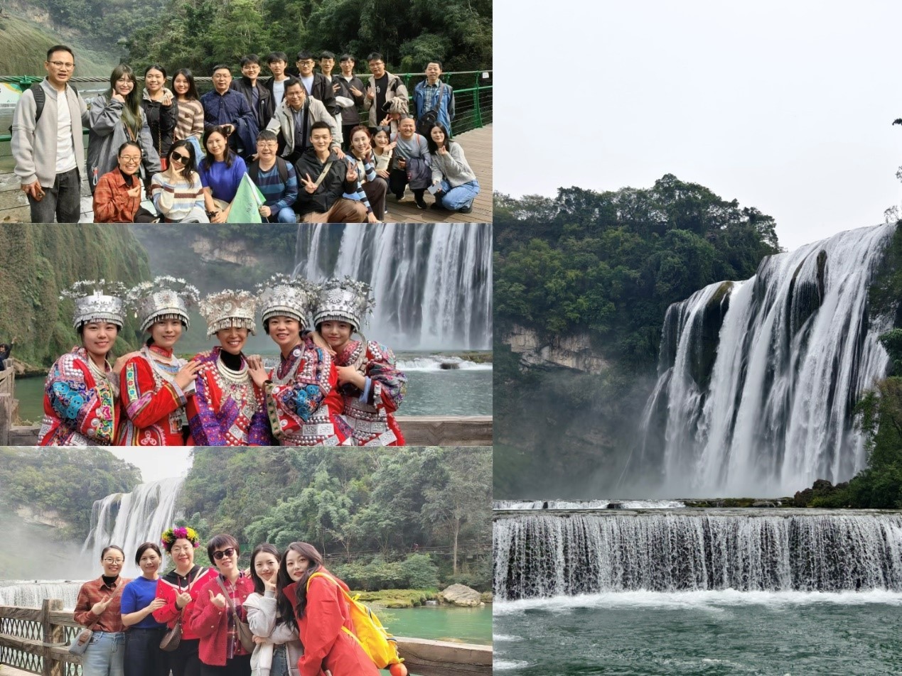 “飞流直下三千尺,疑是银河落九天。” 11月8日上午,公司团队来到了贵州最著名的景点之一——黄果树瀑布。瀑布从高处飞泻而下,气势磅礴,水花四溅。耳边是飞流直下的水声,眼前是层层叠叠的绿意。面对如此壮丽的景象,大家纷纷拿出手机、相机,记录下这震撼人心的一刻。他们站在瀑布旁的观景台上,感受瀑布飞泻而下的气势,有的员工甚至鼓起勇气,靠近瀑布,任由水雾打湿衣裳,享受那份清凉与刺激。
