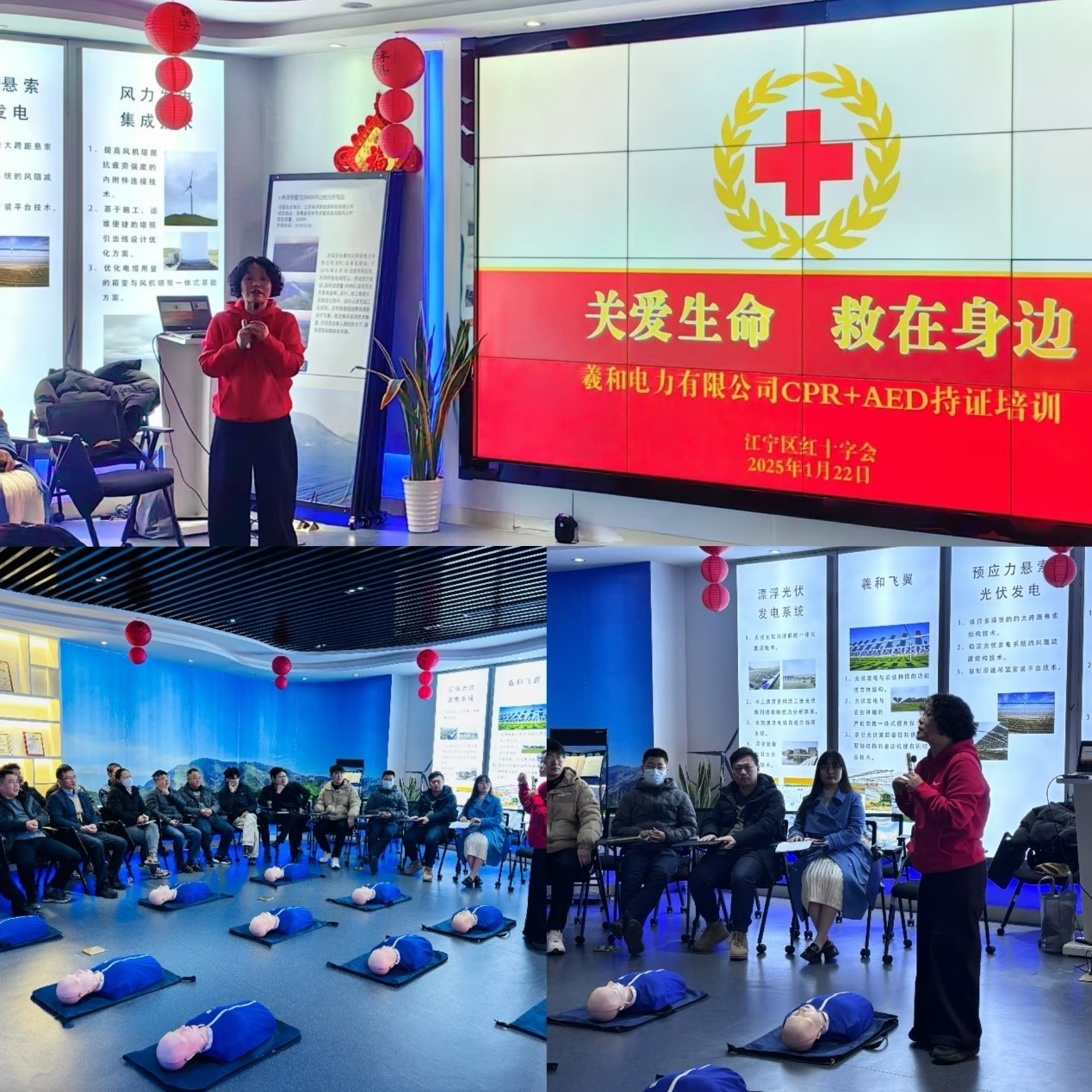 近日,我司为提高员工的急救意识和急救技能,人力资源部特邀江宁区红十字会注册急救培训师张霞老师,开展了一场专业且实用的急救培训活动,重点围绕心脏复苏、自动体外除颤器(AED)、气体异物梗阻三项急救技术展开。