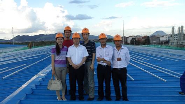 横店东磁20.7MWp金太阳工程自7月22日开工仅一周时间,但施工人力配备、机械进场、物料供应等基础工作已落实到位,目前已有两栋厂房开展组件支架安装。瞿建国总在现场与横店项目部、施工单位负责人等召开了现场工作会议,认真部署生产计划,明确施工要求,并特别强调夏季高温作业的安全管理问题。羲和太阳能公司领导还为施工现场人员送去了防暑降温药品和清凉饮料。脚踩滚烫的彩钢板,头顶烈日,一张张黝黑质朴的脸上写满感动!