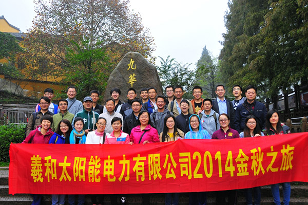 金秋时节,凉风送爽,为丰富员工的文化生活,让员工在繁忙的工作中愉悦身心,回归自然,增进相互间友谊,促进团结协作,同时也为了体现企业的人文关怀,11月1日至2日公司组织全体员工开展了“羲和太阳能电力2014年金秋之旅活动”。此次活动的行程是:九华山-牯牛降。佛教文化与秀丽山水在这里完美融合,移步换景,每一处皆是佛化的自然胜景,每一处景色仿佛都有着佛教圣地的圣洁与光辉,令人流连忘返。