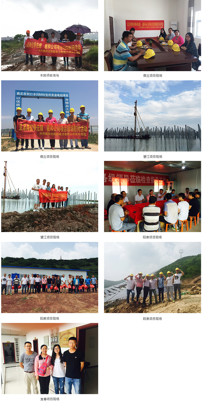 此次慰问活动走访的部分项目现场分别为:商丘市刘口乡20MW农业光伏电站项目、信义50MWp光伏并网电站项目、东阳六石25MW农光互补发电项目、宜春5MWp屋顶分布式光伏发电项目、江西樟树28MW屋顶分布式光伏发电项目、山西阳泉50MWp光伏发电项目。通过此次慰问活动,带去了公司对项目团队的慰问与关怀,增强了与项目团队的沟通和交流,活动取得预期效果,圆满结束!