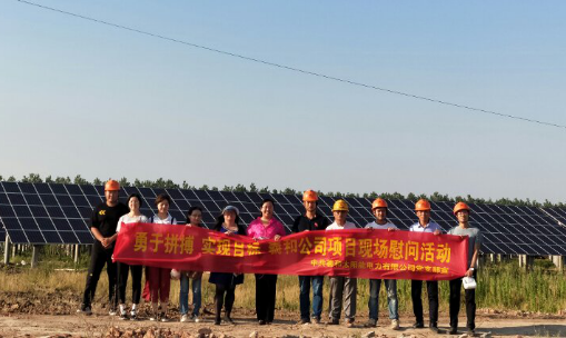 6月份,连日高温、骄阳似火,为快速推进施工进度,确保各6.30项目顺利如期并网,项目现场员工战高温、斗酷暑,攻坚克难,加班加点,拼搏奋战在施工第一线。他们在滚滚热浪中保质保量、高效地完成着施工生产任务。公司党支部和人力资源部牵头,工程管理部、质量管理部、设计研究院和相关党员参与,开展了对以上四个重点在建项目的现场慰问活动,炎炎夏日送清凉,丝丝关怀暖人心。