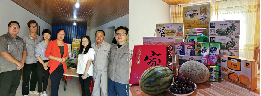 随后慰问组分为两组,一组由董工带领前往员工宿舍,了解员工的居住条件、用餐情况等,并为仍在现场工作的同事们包起了饺子;另一组则留在项目现场开展资料检查工作。中午,大家共进午餐并亲切交流。同时,卞总一行还带来了公司为大家准备的防暑护理用品、饮品、日用品、中秋月饼等丰富的物资,项目团队人员纷纷表示感谢公司的关怀,一定要立足岗位,攻坚克难,努力实现项目目标!