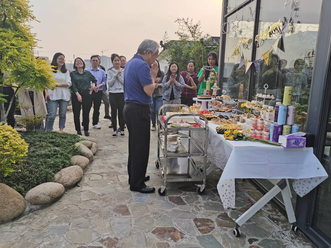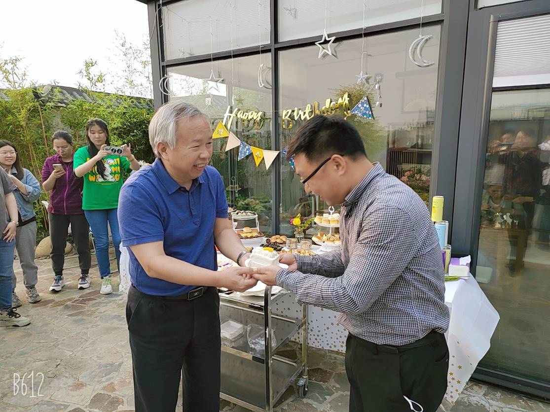 时至五点零八分,活动正式展开,我司员工在卞总的引导下列队鼓掌,高唱生日快乐歌,董事长顾华敏先生在员工的簇拥与晚霞的辉映中许下美好愿景,并亲自为在场员工分享生日蛋糕。用心血育得百花开,在此美好的日子里,谨祝顾董快乐、幸福!亦祝羲和奋进、腾飞!