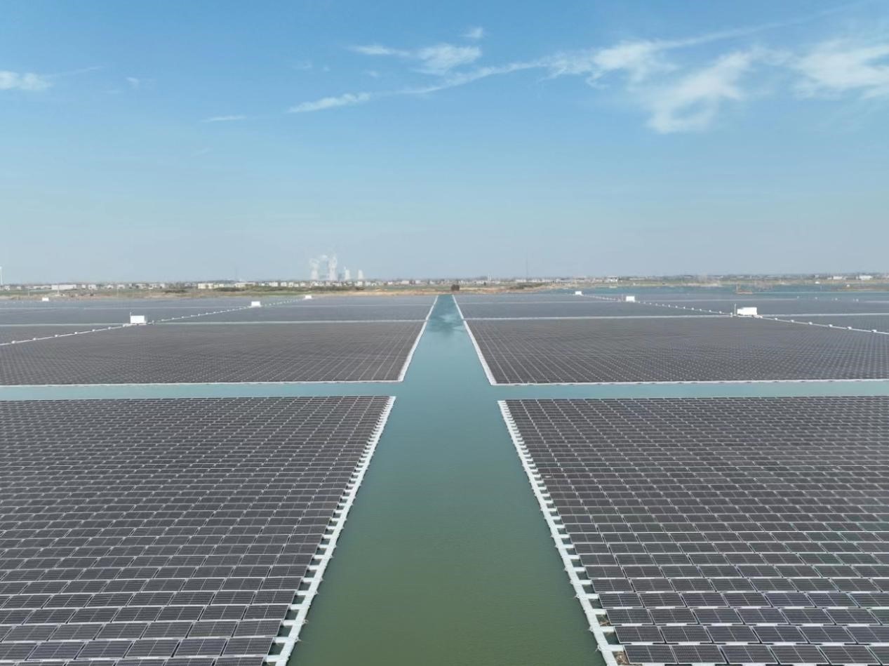 三峡能源安徽阜阳南部风光储/电基地650MW水上漂浮光伏项目全容量并网发电
