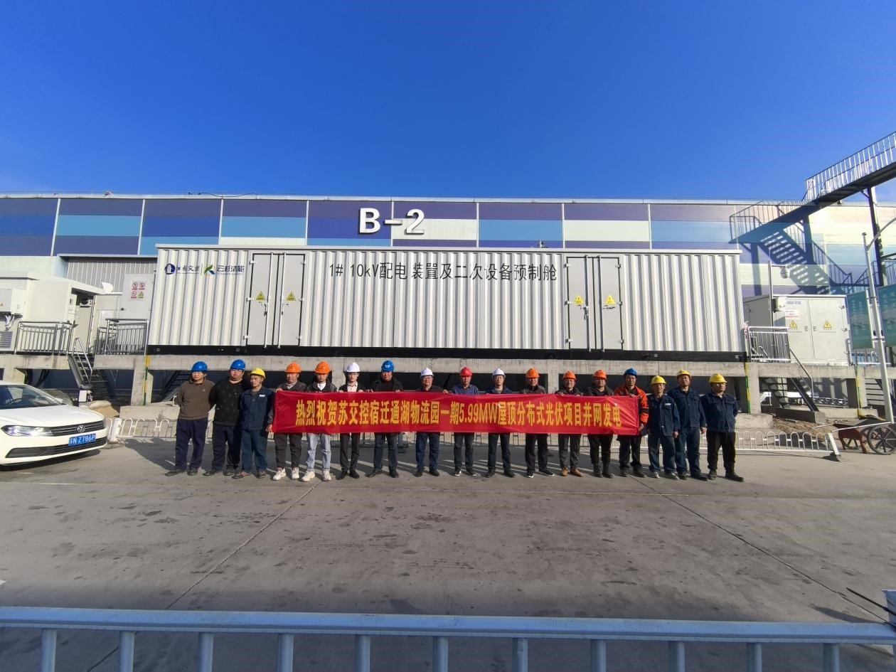 苏交控宿迁通湖物流园一期5.99MW屋顶分布式光伏项目 全容量并网发电