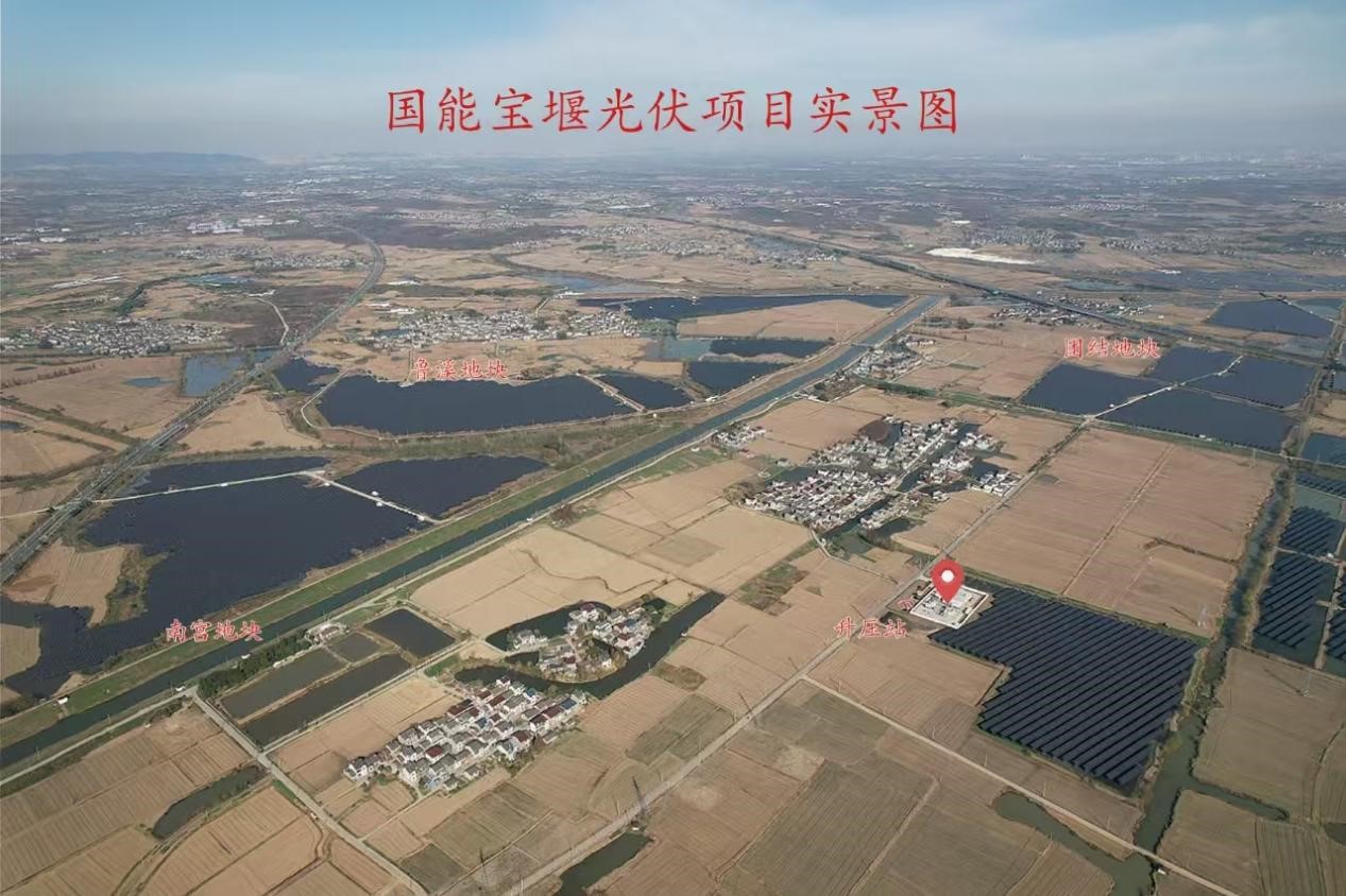 国能谏壁宝堰光伏发电站位于镇江市丹徒区宝堰镇,占地1200亩鱼塘水面,总容量80兆瓦,1号子系统70兆瓦,2号子系统10兆瓦。本发电站全寿命运行期为25 年,年平均上网电量约为 16846.46万千瓦时,年均等效满负荷发电小时为 1123.1小时。每年可节约标煤5.14万吨,对应减少二氧化硫排放量约 1.94万吨,氮氧化物2.78万吨,二氧化碳13.34 万吨。国能谏壁宝堰镇渔光互补光伏项目的并网发电,积极响应了碳排放达峰目标、碳中和国家战略,强化了江苏省及镇江市清洁能源的开发利用规模,推动了清洁的可再生能源对化石能源的替代。接下来加快推进后续工作,为国家能源集团“一个目标、三个作用、六个担当”的发展战略顺利推进贡献一份力量。