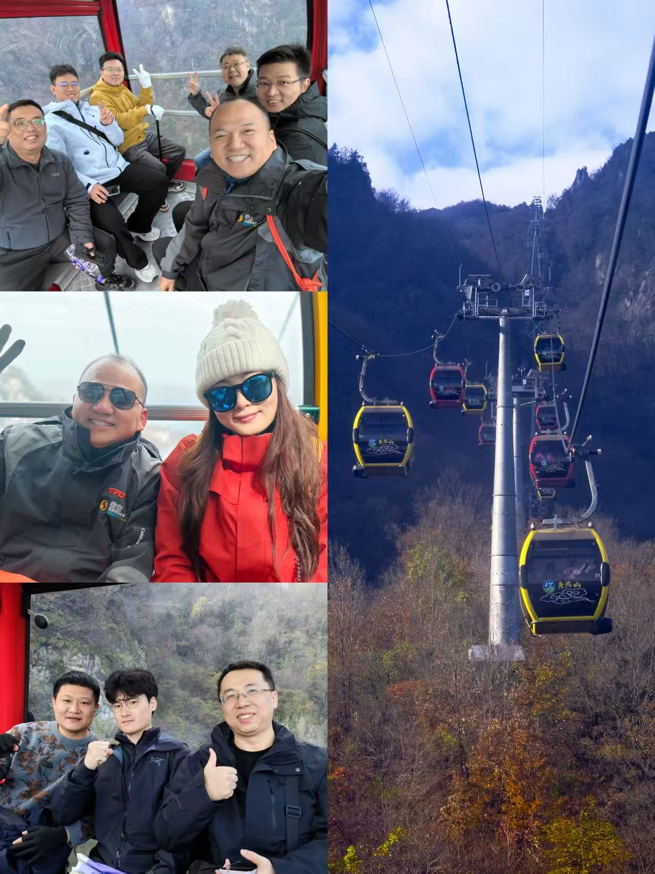 乘缆车、踏山路。抬眼间,烟纹云缕、奇岩怪石与润碧松柏尽收眼底。大家肆意呼吸山中清气,工作的忙碌顿时化作眼底的开阔,团队凝聚力在共同攀登的喜悦中悄然升温。山间夹缝处晨光渐散,立于半山腰,道家仙骨遗韵随风声拂耳,恍惚间大家似化身为山中修行者,与山石草木相融。