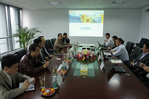 瞿总首先向客人介绍了羲和太阳能电力有限公司的成立和发展情况。公司作为我国光伏领域最专业的系统集成商和整体解决方案服务商之一,以设计、研发和工程项目管理三大平台为基础,全面提供大中型地面并网光伏、光热电站,小型离网/并网光伏发电系统,光伏建筑一体化等太阳能应用项目的咨询、设计、系统集成、工程总承包等一站式解决方案。公司拥有来自电力设计和建设行业经验丰富的研发、设计、采购、施工、安装、调试和运营管理的全方位人才队伍。与中国电科院、国网电科院、各电力设计院、东南大学、中国能源环保控股有限公司等数十家科研院所和企业单位保持紧密的战略合作关系。核心团队从2008年开始大规模开展光伏发电系统集成业务,先后主持完成了一大批在国内有重要影响的光伏发电工程项目。羲和太阳能公司今年已经承接4个项目计72MW的金太阳屋顶、地面以及农业大棚项目的EPC任务。