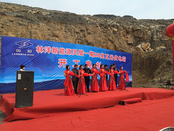 2015年4月8日10时28分,由林洋电子(上交所股票代码601222)投资建设的林洋新能源灵璧一期20兆瓦光伏电站开工典礼在安徽省宿州市灵璧县凤山脚下隆重举行。该项目分两期建设,总装机规模40兆瓦,由羲和公司EPC总承包,一期20兆瓦和二期20兆瓦同步建设,计划在2015年8月底并网发电。