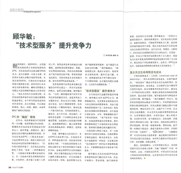 “技术型服务 提升竞争力”--顾华敏总经理接受光伏产业杂志专访