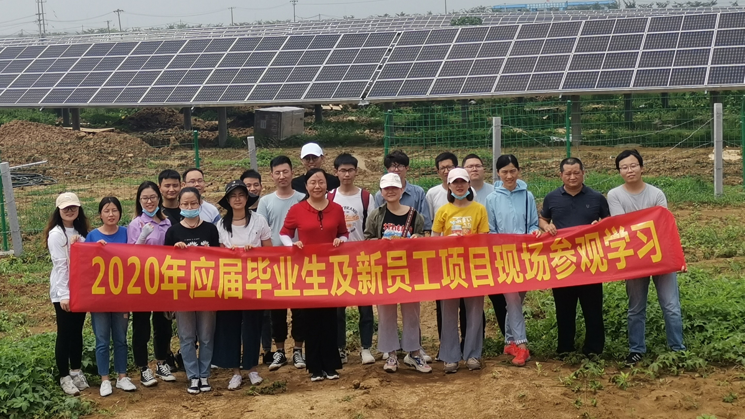 7月7日,在人力资源部卞亚萍总经理、人力资源管理师池玲以及设计研究院田顺庆主任的带领下,新员工来到三峡泗洪112MW牧光互补光伏项目现场进行参观学习,田主任结合设计与施工详细向大家介绍了现场光伏电站的构成、新技术应用、设备选型等内容,新员工们踊跃提出各种问题,田主任一一耐心解答,新员工们收获颇丰。