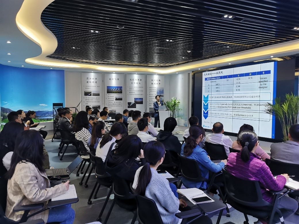 首先,在项目前期风资源分析方面,专家就测风数据的统计分析、测风塔的建设使用以及年发电量的预估进行了深入介绍。我司员工结合项目现场施工经验,就项目前期开发中的实际工作问题与专家进行了探讨交流,专家为我司未来项目前期开发工作提供了专业指导。