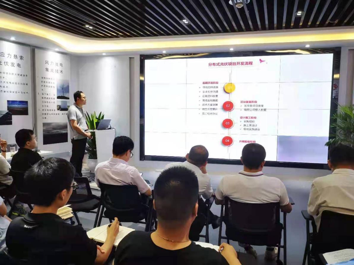 接下来,由具备丰富实战经验的李经理从项目前期开发、项目备案、设计施工和并网验收四个阶段介绍了新能源发电项目的开发流程,并针对接入系统和并网流程条件等内容与在座同事进行了深入的探讨和交流。