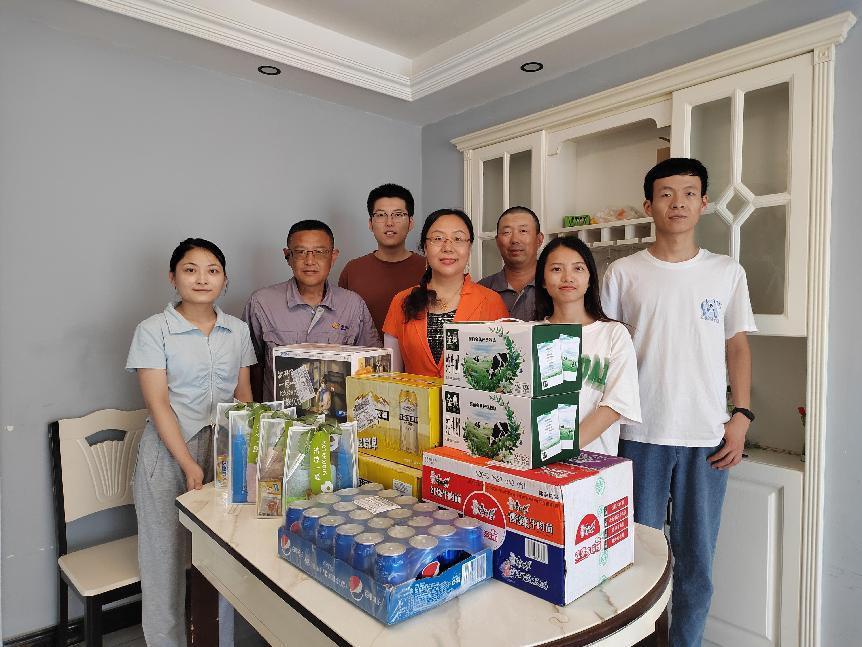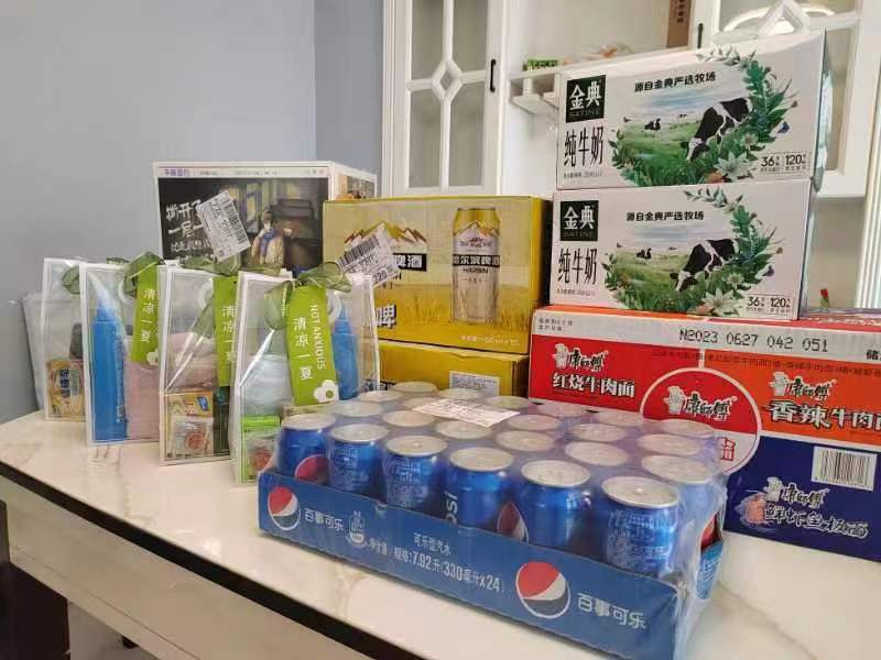 慰问团队到达响水项目现场后,与项目成员进行了亲切的沟通。卞总一行带来了公司为大家准备的关怀大礼包,包含有花露水、香皂、毛巾等夏日必备清凉用品,还准备了可乐、啤酒、方便面、牛奶、面包等丰富的生活物资。