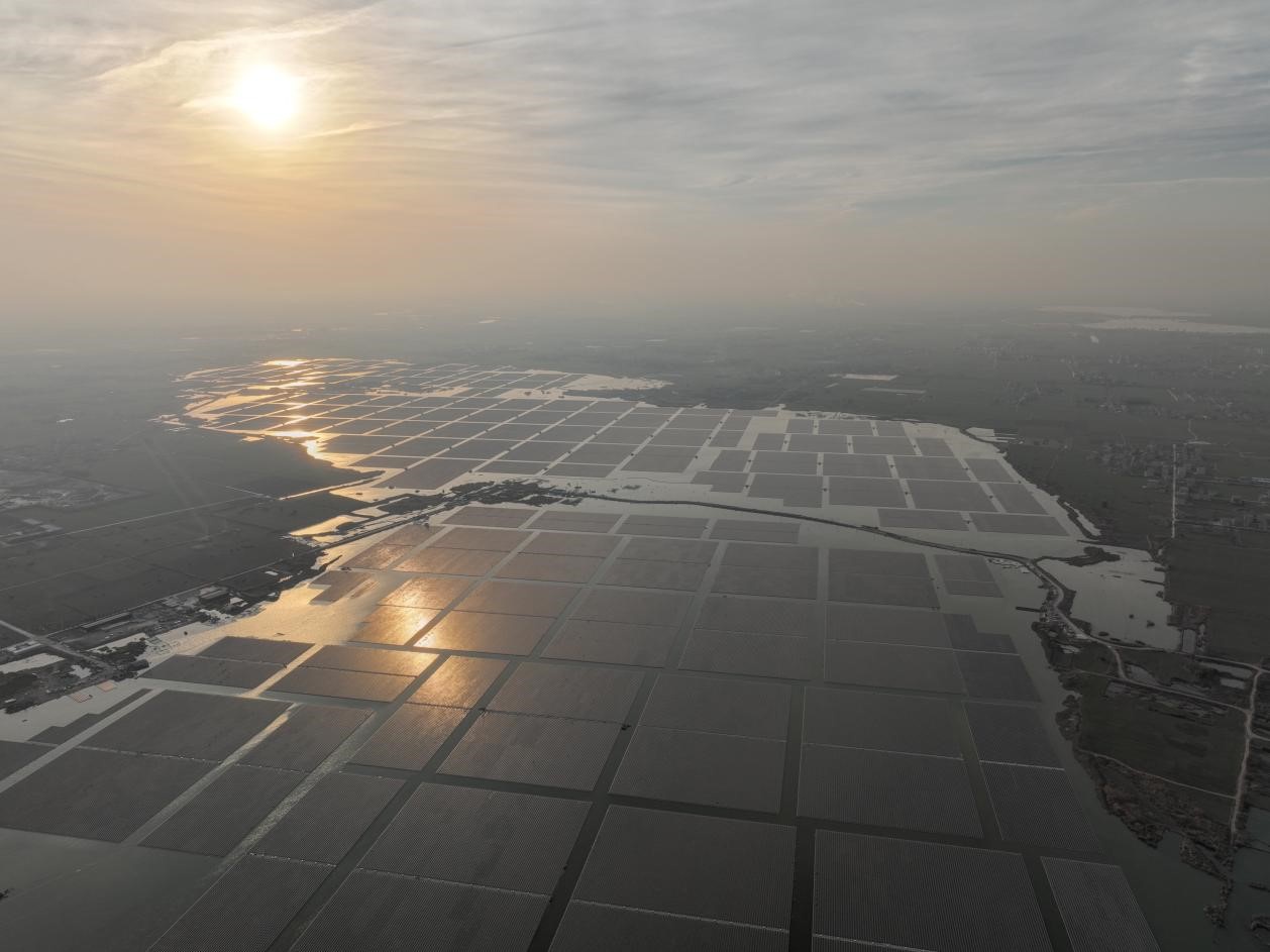 2023年12月27日,由羲和电力有限公司(牵头方)和中能建建筑集团有限公司(成员方)联合总承包建设的三峡能源安徽阜阳风光电基地颍上二期400MW水上漂浮光伏项目成功实现全容量并网发电!包括先前由羲和电力参建的阜阳市南部风光储基地(古城)250MW水上漂浮光伏项目(已投产),总装机容量达到650MW,是目前我国乃至世界规模最大的漂浮式光伏电站,年平均发电量约7亿千瓦时。