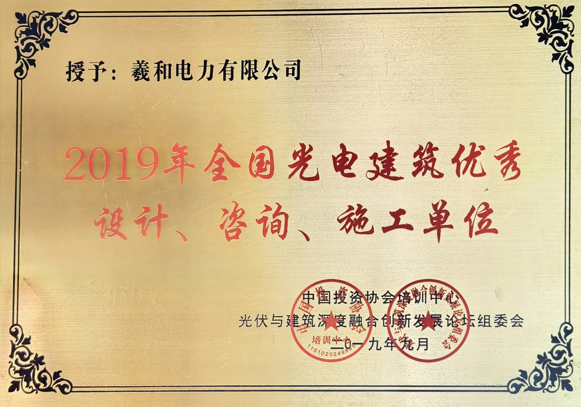 2019年全国光电建筑优秀设计、咨询、施工单位